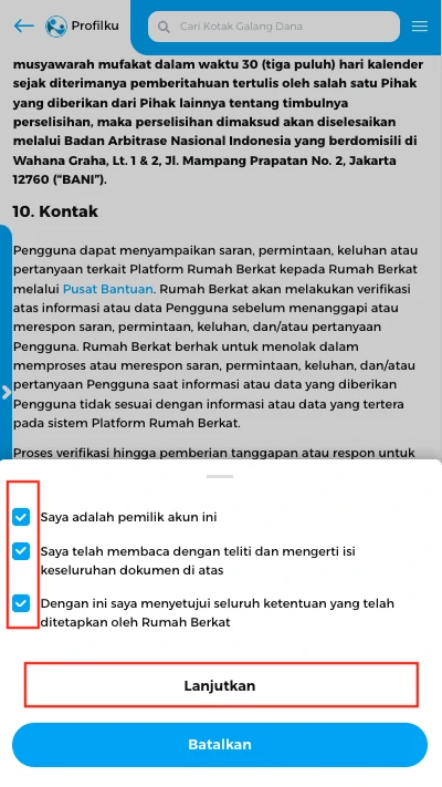 Centang syarat & ketentuan , kemudian klik tombol “lanjutkan”