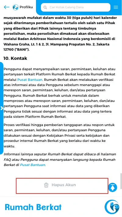 Baca kebijakan & privasi, Klik tombol “hapus akun”
