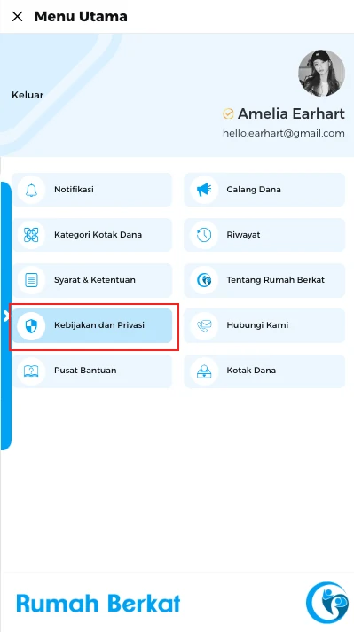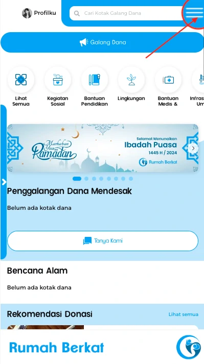 Pilih tombol “garis tiga” kanan atas pada halaman utama.