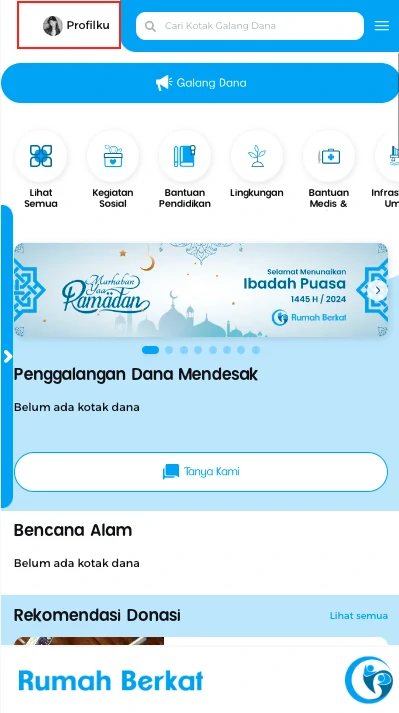 Pilih tombol “profilku” kiri atas pada halaman utama