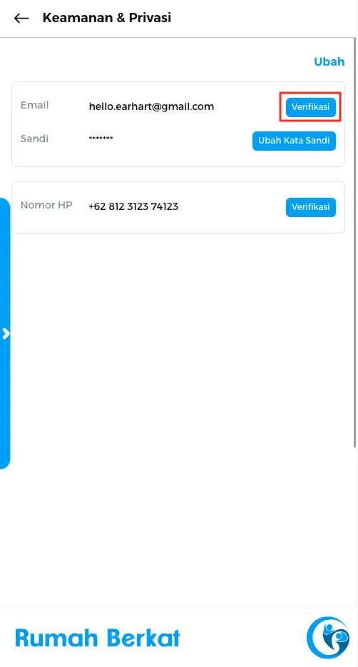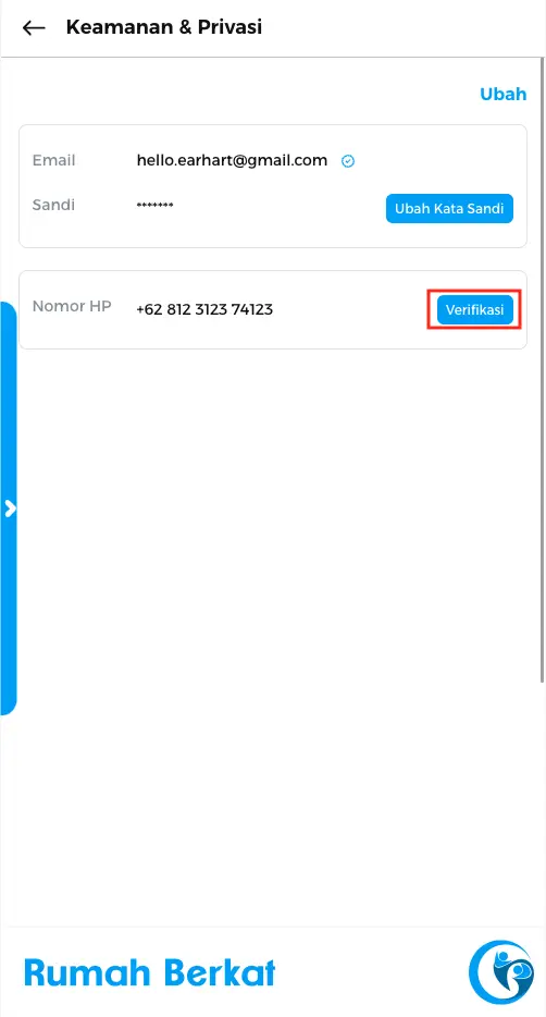 Klik tombol “verifikasi” pada kolom nomor HP.