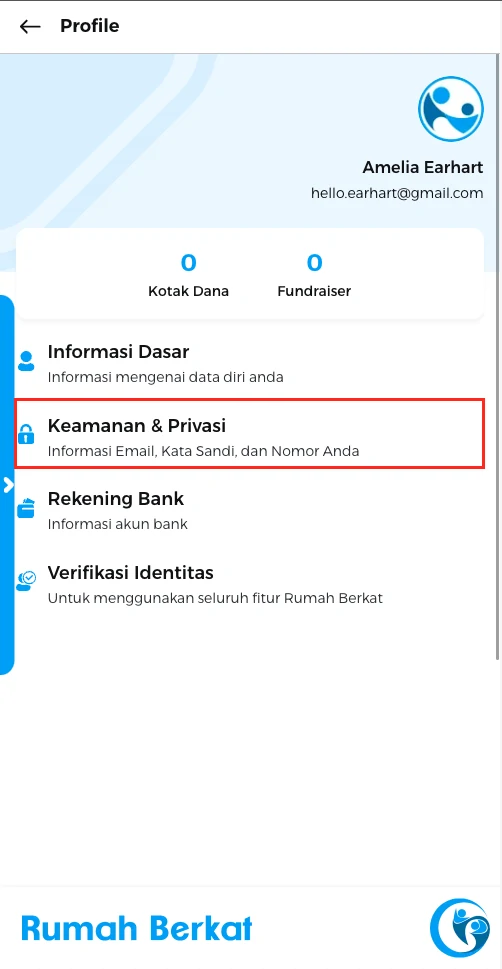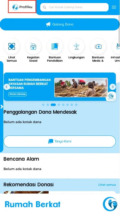 Pilih tombol “profilku” kiri atas pada halaman utama