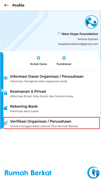 Pilih opsi “Verifikasi organisasi/perusahaan”