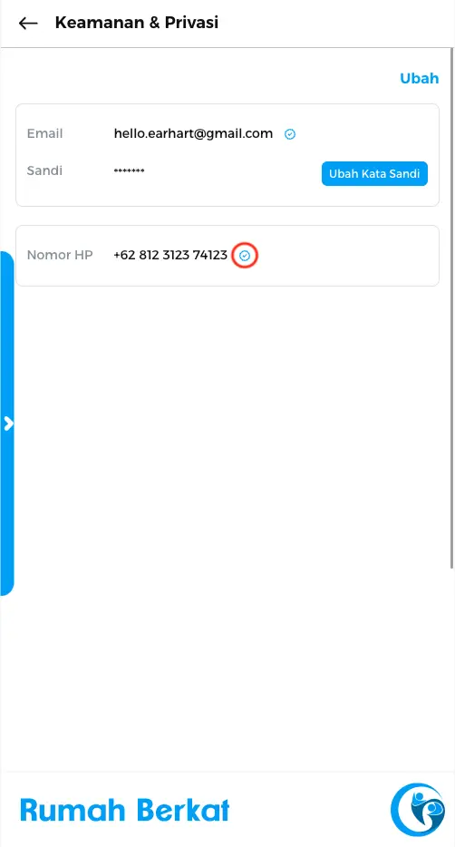 Anda akan mendapatkan centang biru menandakan nomor HP anda berhasil terverifikasi.
